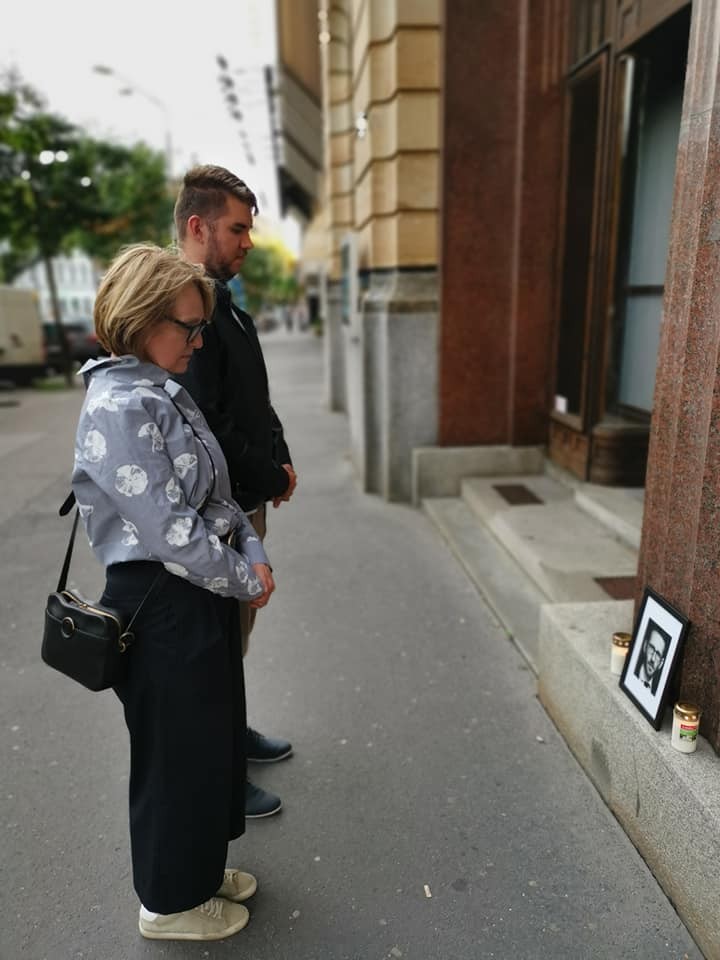 Viceprimátorka Lucia Štasselová položila pred budovu ministerstva kultúry portrét zosnulého a zapálila sviečku. "Modlíme sa za Zuzanu Dolinayovú Kutlíkovú, ktorá je v nemocnici v kritickom stave, zranený je aj ich synček," vyjadrila svoje pocity.