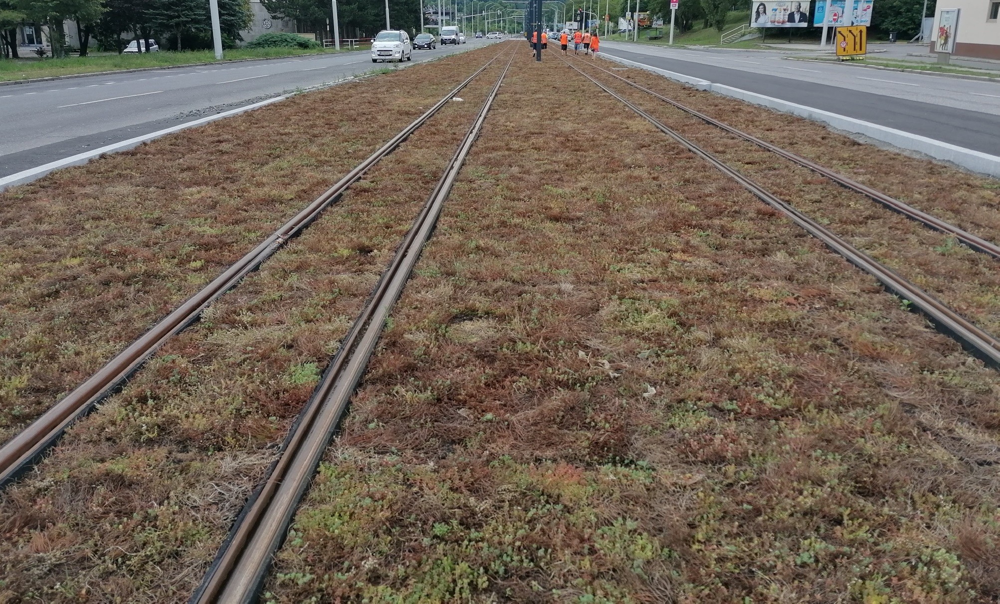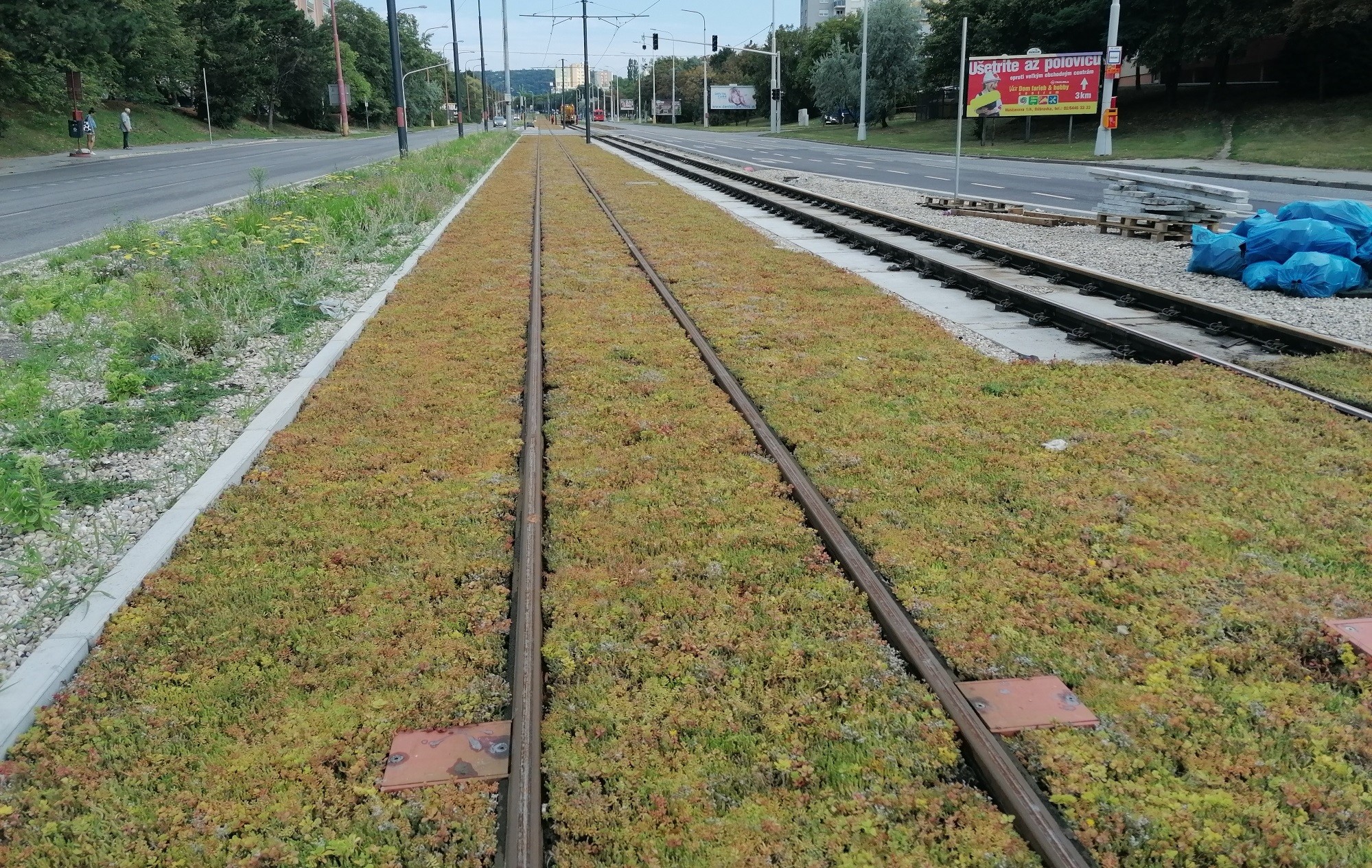 Rozchodníky, ktoré môžu zakvitnúť na rôzne farby, vysadili najskôr na jeseň minulého roka v Karlovej Vsi na trati neďaleko Námestia sv. Františka. Tento rok pribudli aj na krátkom úseku v Dúbravke (medzi zastávkami Harmincova a Záluhy) a počas leta vysádzajú tieto rastliny aj na ďalších úsekoch radiály v Karlovej Vsi. Mnohých ľudí však zarazila ich hnedá farba, hoci sa pôvodne avizovalo, že rastlinku netreba polievať, čo mala byť jej hlavná výhoda oproti zatrávneniu.