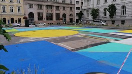 Komenského námestie slúžilo v minulosti ako parkovisko, no nové vedenie magsitrátu ho začalo pretvárať na verejný priestor. Námestie sa mení i v týchto dňoch, zaplnili ho rôzne farebné obrazce.