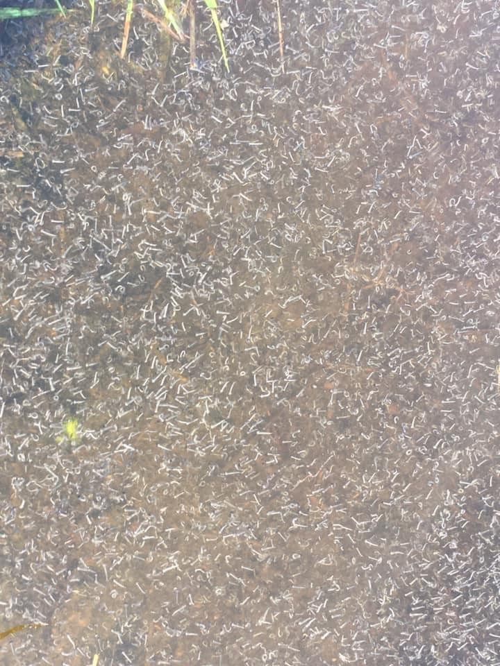 Larvy komárov vo vode v Devínskej Novej Vsi, ako ich nafotila miestna obyvateľka 8. augusta.