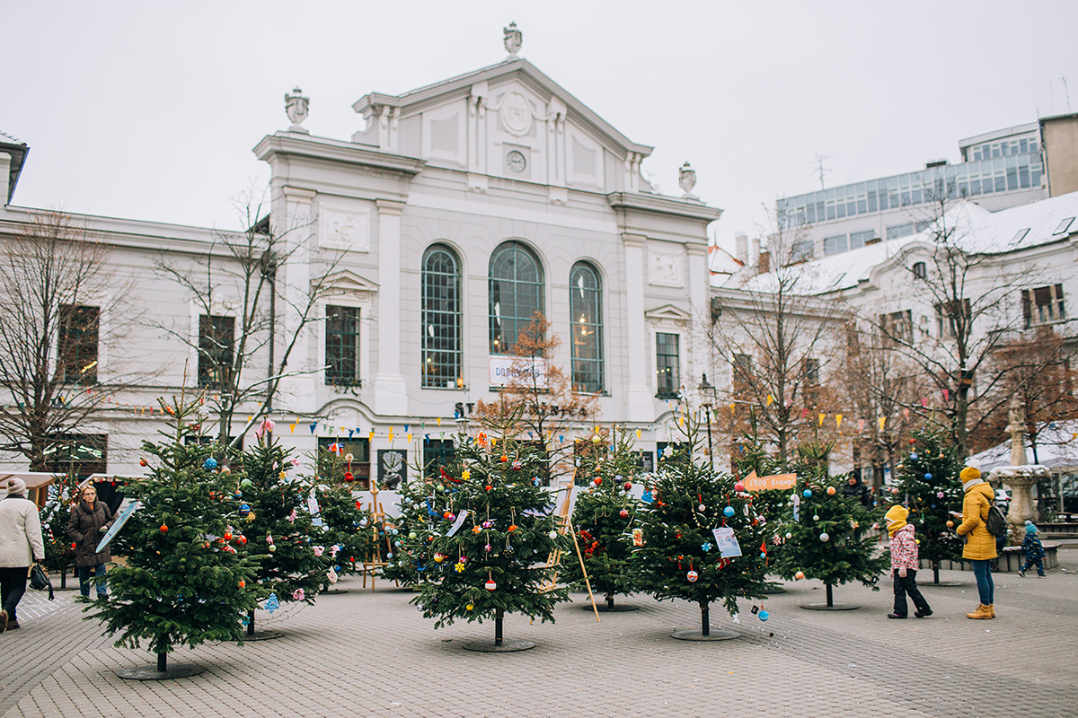 Vďaka stromčekom ozdobených žiakmi z bratislavských ZŠ a MŠ ožilo aj priestranstvo pred Starou tržnicou na Námestí Nežnej revolúcie...