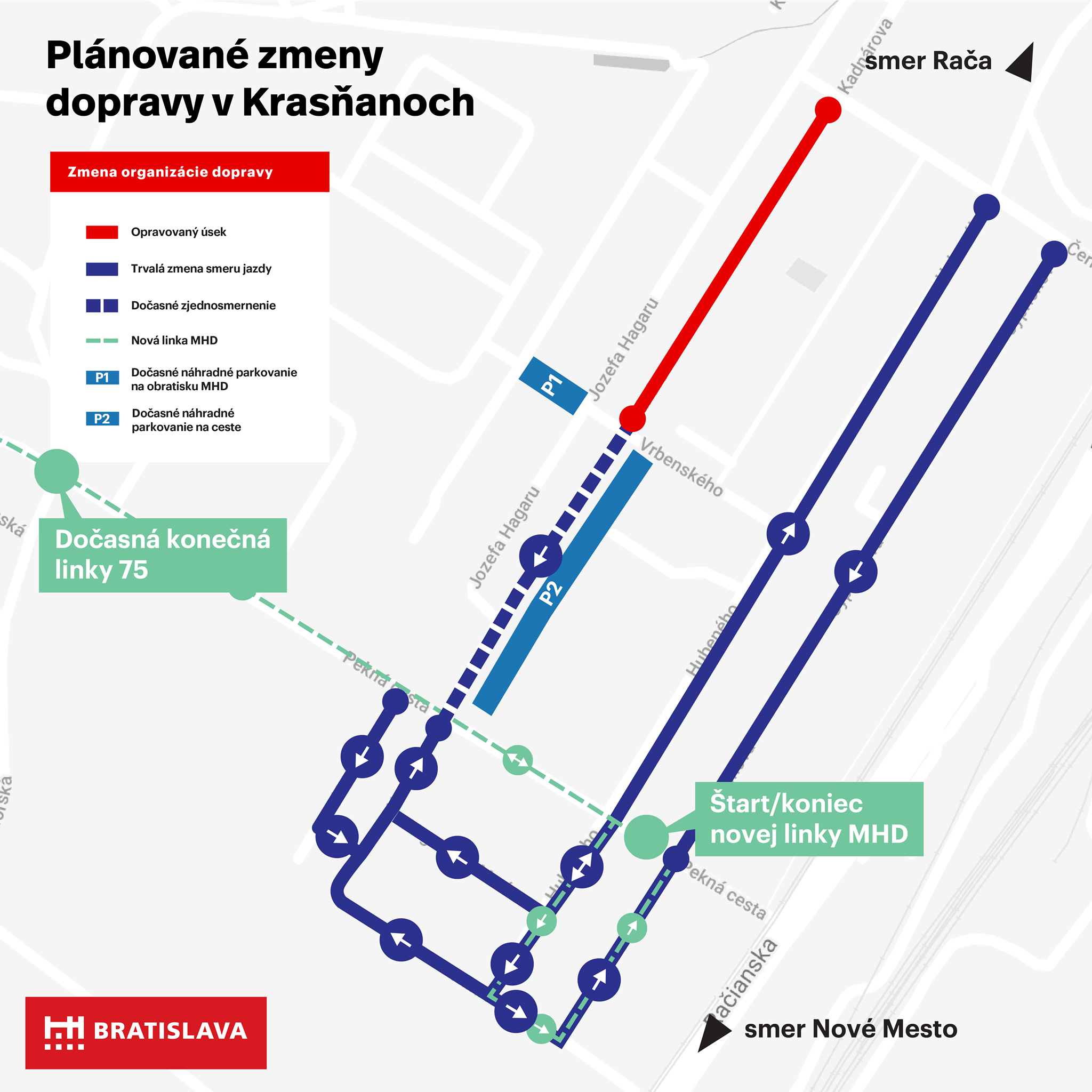 Zároveň dôjde počas tohto obdobia k zavedeniu niekoľkých trvalých zmien s cieľom zlepšiť dopravu v Krasňanoch. Cieľom je znížiť napríklad tranzit, keďže v súčasnosti časť vozidiel prichádzajúcich z Rače do mesta nejde po radiále, ale cez Krasňany. Okrem toho dopravu zahusťuje aj zastavovanie vozidiel pred školami na Hubeného.