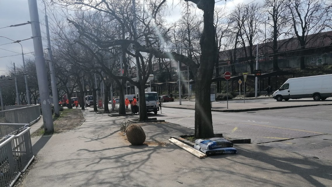 FOTO: Na námestí pod Hlavnou stanicou rúbu a sadia stromy
