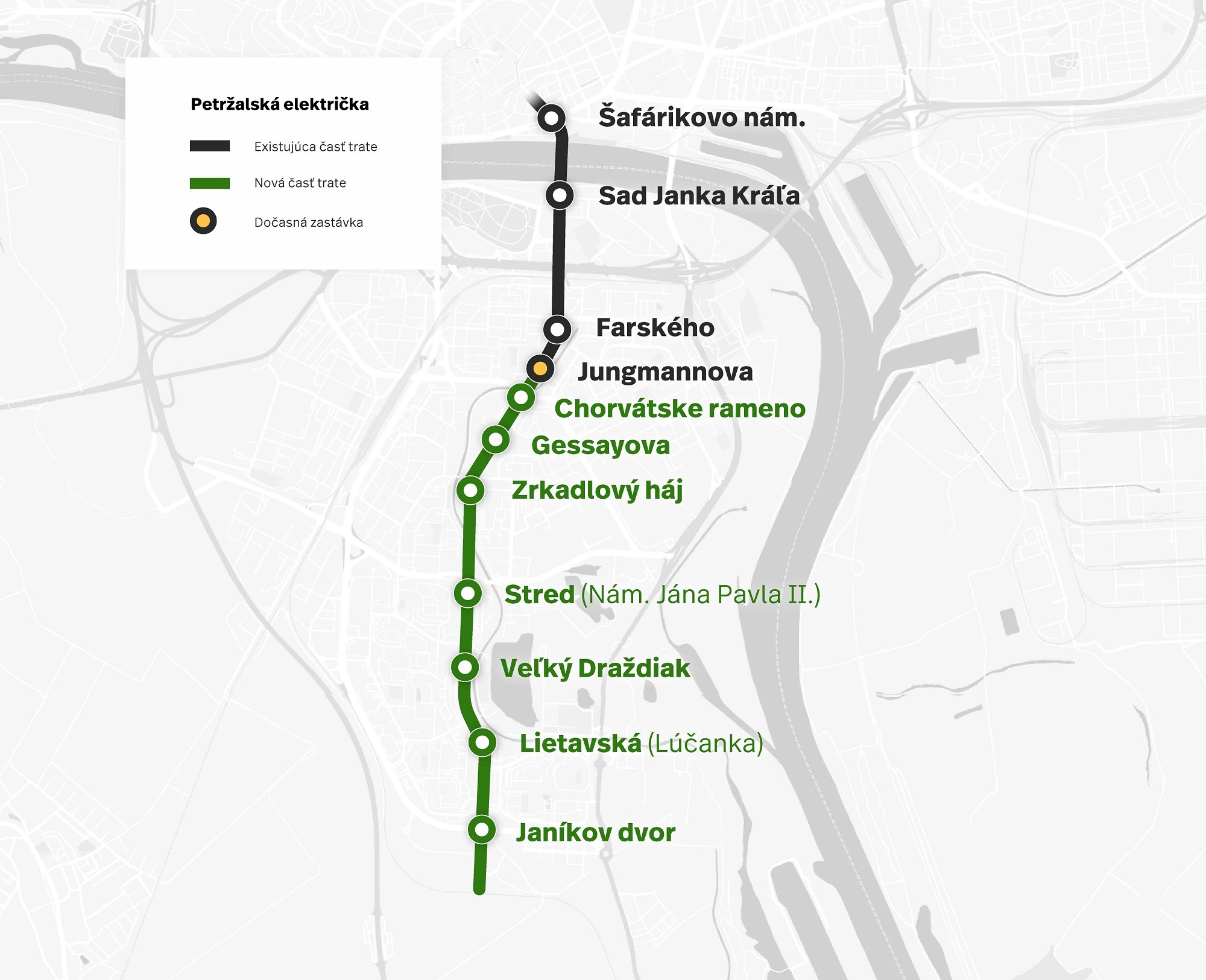 Nosný systém MHD – električková trať v úseku Bosákova – Janíkov dvor nadväzuje na prvú časť električkovej trate Šafárikovo námestie - Bosákova. Ide v súčasnosti o najväčší dopravný projekt mestskej hromadnej dopravy v našom meste, ktorý vo veľkej miere odľahčí dopravnú situáciu a plynule sa napojí na zrekonštruovanú električkovú trať na Starom moste, ktorá vedie ponad Dunaj. Vďaka tomuto spojeniu bude verejnosť len za pár minút komfortne a bezpečne cestovať z historického centra mesta až na koniec našej najväčšej mestskej časti Petržalky.
