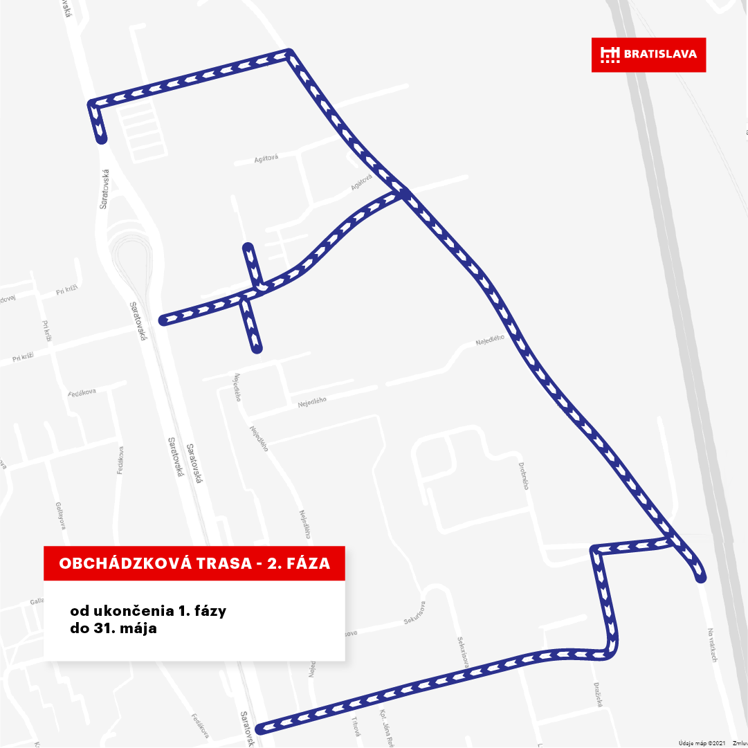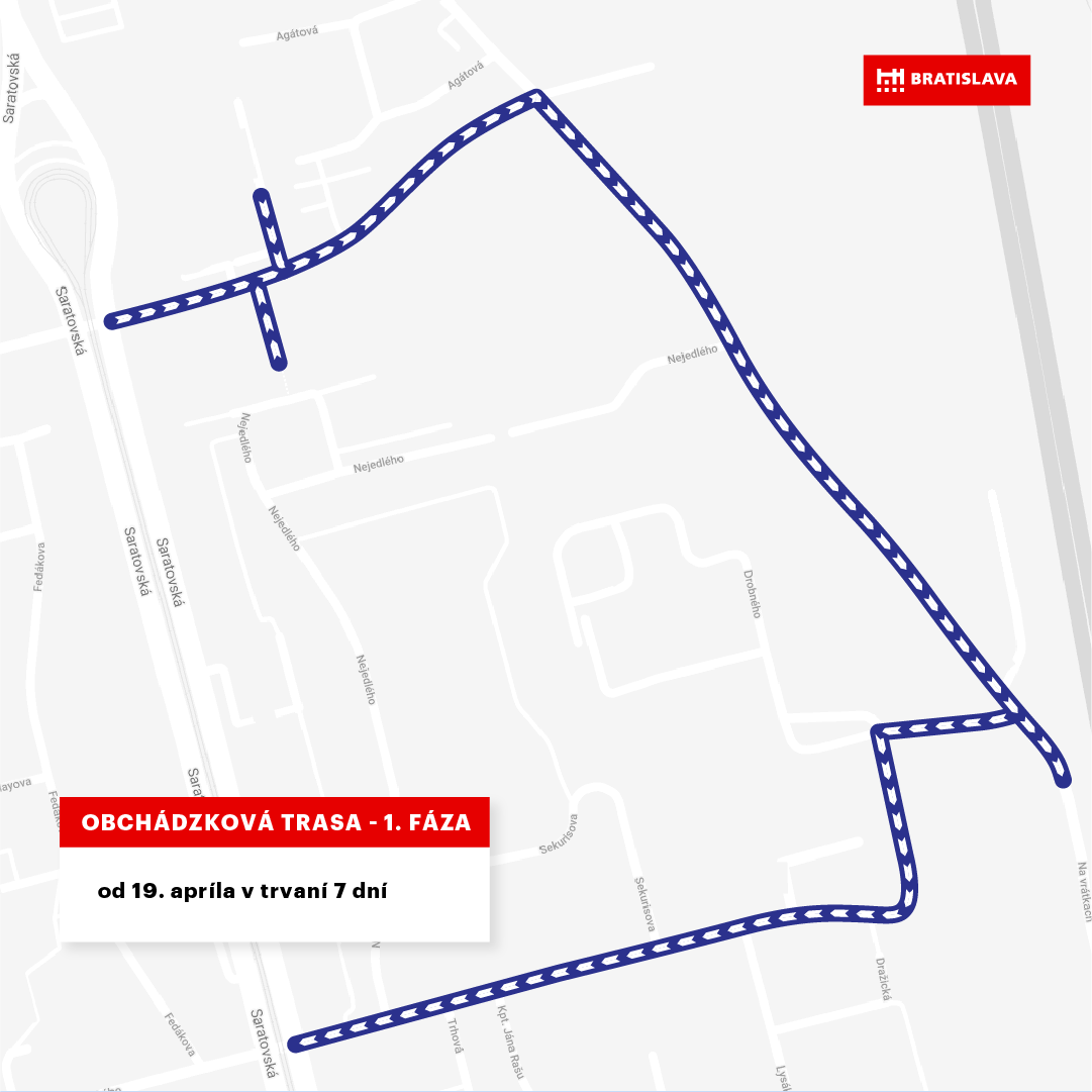 V opravovanom úseku nebude možné zastavenie a státie vozidiel. Obmedzené budú aj parkovacie miesta a obchádzková trasa pre individuálnu automobilovú dopravu bude viesť po ulici Saratovská a Na vrátkach. Na mieste budú vyznačené obchádzkové trasy.