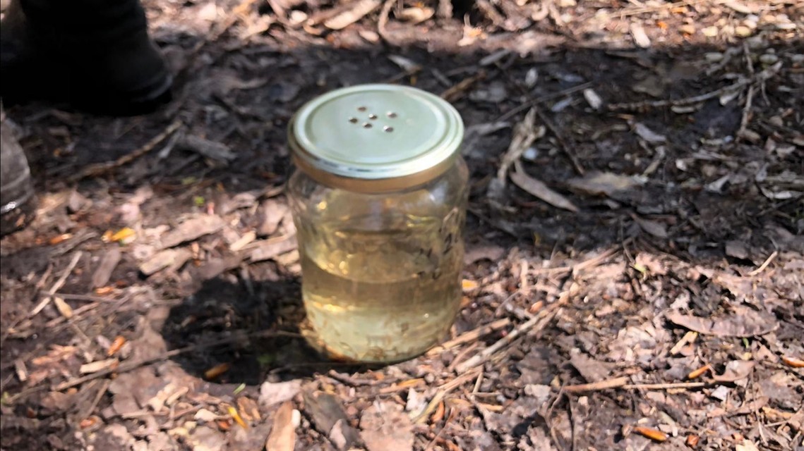 A takto prebieha monitoring liahniska na Veľkom Draždiaku dobrovoľníčkou, podarilo sa jej chytiť tri larvy komárov. Larvy sa zdržujú v bahnovej časti, pretože vo vode ich ryby zjedia.