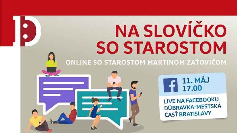 Prvý livestream Na slovíčko so starostom bude z kancelárie starostu 11. mája o 17.00. Dúbravské otázky môžu obyvatelia už písať do komentárov na sociálnej sieti Dúbravka – mestská časť Bratislavy alebo do správ.