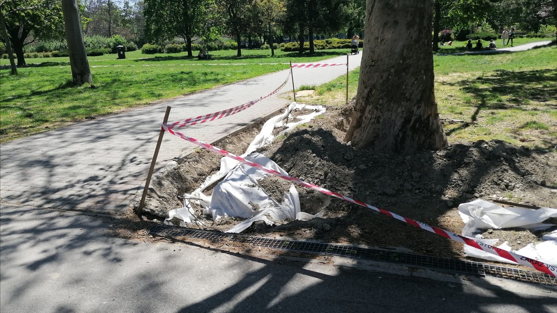 Rozkopaná je časť parku pri lavičkách neďaleko reštaurácie Planétka a trávnik pod parkoviskom pri priemyselnej škole. "Ide o jeden z prvých projektov v Ružinove, vodozádržné opatrenia podľa návrhu pána Kravčíka. Zjednodušene povedané, vybuduje sa jarok s viacerými vrstvami substrátu," vysvetlil nám Patoprstý.