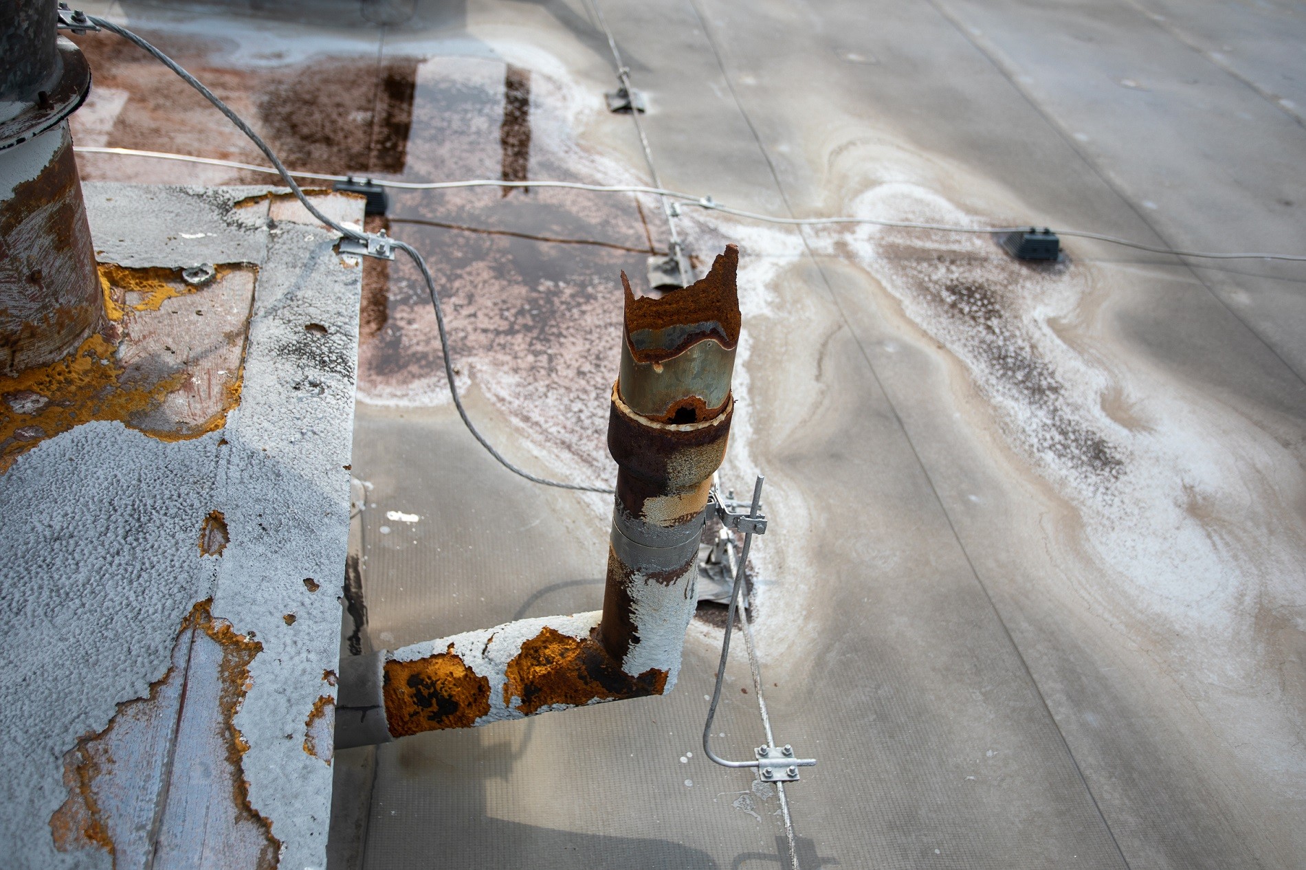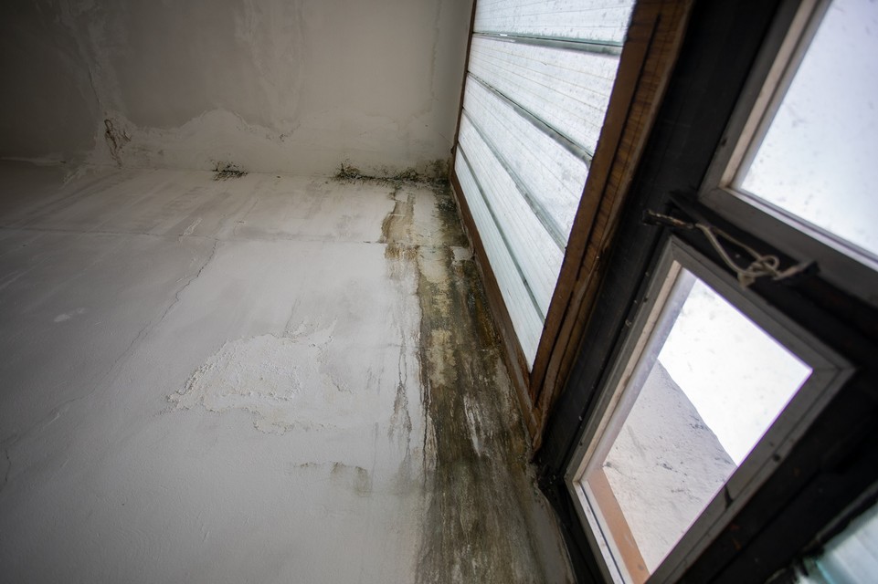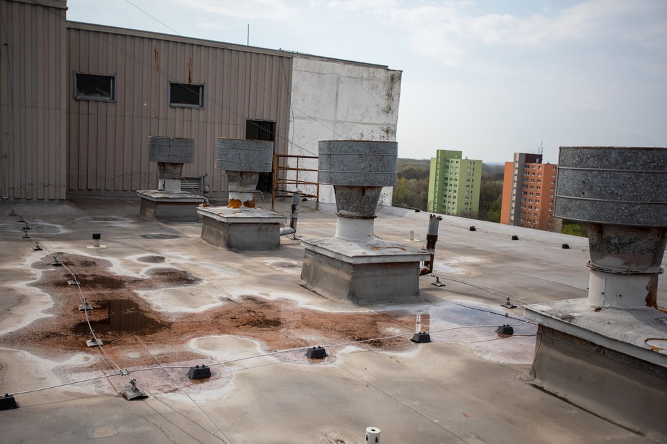 Strecha sa roky iba plátala, je preliačená s mlákami vody a hrdzavými odtokmi.