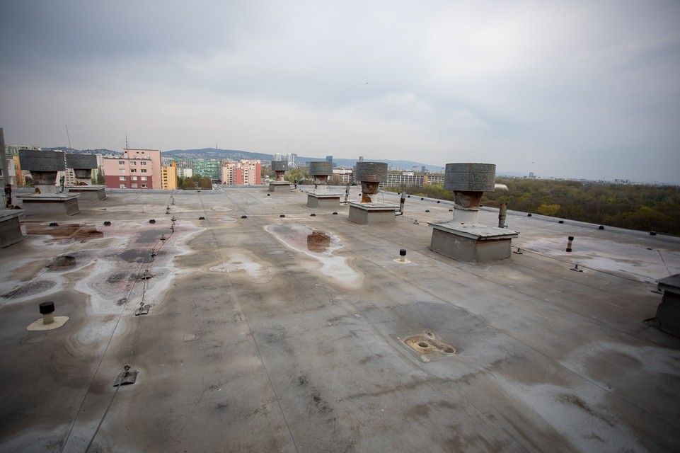 Na „prehliadku“ ideme s petržalským poslancom Miroslavom Dragunom, ktorý na poslednom zastupiteľstve apeloval, aby sa z prebytku rozpočtu vyhradilo v júni na výmenu stupačiek a opravu strechy zhruba 300-tisíc eur. „Je to akútne. Mnohým nájomníkom nefungujú vodomery. Niet z čoho odpísať spotrebu. Avšak vymeniť sa nedajú, pretože inštalatér by pri výmene vytrhol aj časť rúry,“ hovorí. „Už sme mali v dome poistnú udalosť za viac ako 8-tisíc eur po vytopení práve kvôli rozpadávajúcim sa stupačkám. Tie sú ešte prioritnejšie ako strecha.“