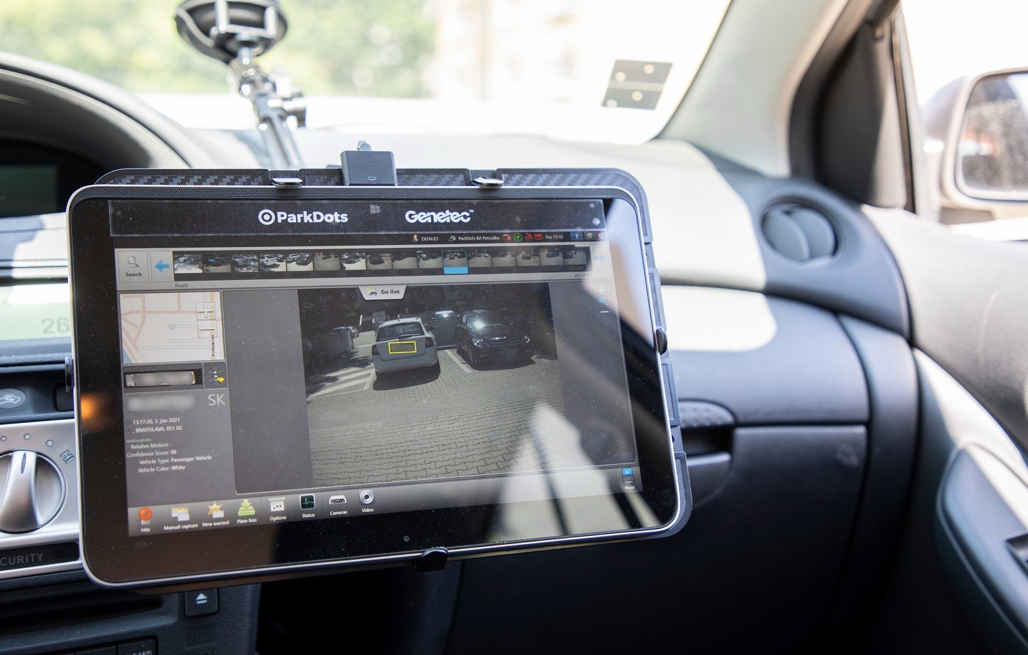 Auto slúži jednak na sčítanie áut, jednak na kontrolu. Systém vozidlá skenuje a fotí. Na monitore vidím, že zachytáva aj tie na ceste, ale vie, že si ich nemá všímať. Na rezidentskom parkovisku softvér vyhodnotí, či ide o auto rezidenta, alebo má zaplatené parkovanie, informácie si vie vytiahnuť z databáz. Ak áno, vozidlo ďalej nerieši, ak nie, posiela údaje o ňom ako hlásenie priamo mestskej polícii. Tá dostane informáciu, o aké auto ide, na ktorom parkovisku sa nachádza, fotografiu, aj detail značky. „Vy teda počas jazdy netušíte, ktoré autá parkujú v súlade a ktoré nie?“ pýtam sa Ivana Lučaniča. „Ani to nepotrebujem vedieť,“ reaguje a dodáva, že to uvidia v systéme v kancelárii, kde chybové značky prechádzajú manuálnou kontrolou. Z 10-tisíc značiek totiž kamery nezosnímajú dokonale zhruba 200.