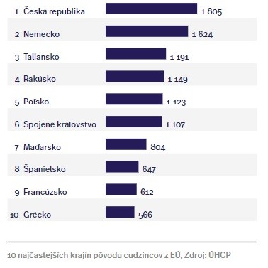 Dáta ukazujú aj kozmopolitnú stránku Bratislavy. Cudzinci predstavujú až osem percent populácie a podľa vývoja grafov bude ich podiel do budúcnosti rásť. „Typickým cudzincom v meste je muž v ekonomicky produktívnom veku. Naopak, medzi cudzincami je nízky počet detí a starších ľudí,“ približuje Milota Sidorová, riaditeľka Sekcie mestských štúdií a participácie Metropolitného inštitúty Bratislavy. Najviac cudzincov sa koncentruje v kozmopolitnom Starom Meste, ale tvoria aj klastre v priemyselných areáloch na okrajoch Bratislavy. Zo štátov EÚ u nás najčastejšie žijú Česi, Nemci a Taliani. Z iných častí sveta u nás druhý domov našlo najviac Ukrajincov, Srbov a Rusov.