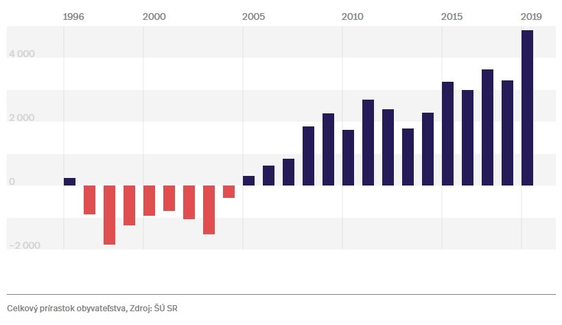 Mesto tieto grafy zverejnilo v aplikácii na svojom transparentnom portáli. Vyplýva z nich, že po rokoch stagnácie sa počet obyvateľov Bratislavy opäť zvyšuje. V roku 2019 pribudlo v hlavnom meste takmer päťtisíc nových obyvateľov, najmä vďaka prílevu ľudí z iných častí Slovenska, ale aj zo zahraničia. Grafy v aplikácii ukazujú napríklad projekciu vývoja populácie v Bratislave a na Slovensku. Rozdiel v populačnej dynamike medzi metropolitným regiónom Bratislavy a zvyškom krajiny sa v najbližších rokoch pravdepodobne prehĺbi, pretože hlavné mesto demograficky odčerpáva ostatné územie, hlavne regióny.