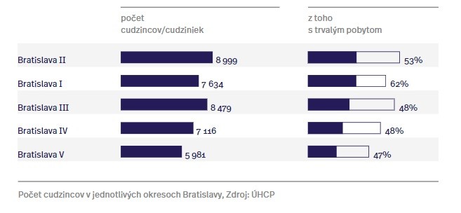 Cudzinci v jednotlivých okresoch Bratislavy.
