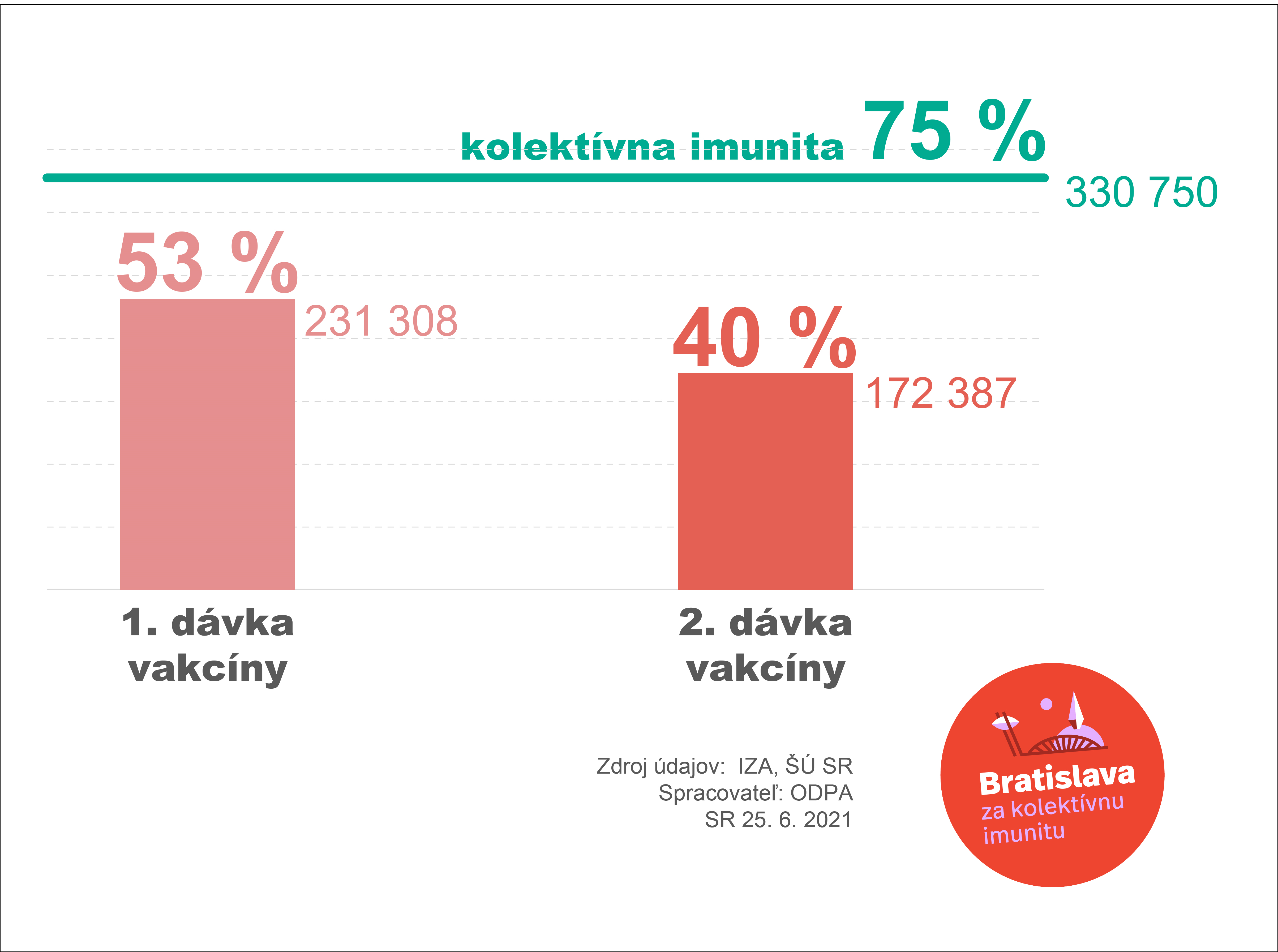 Bratislava má ako jediné mesto na Slovensku šancu dosiahnuť kolektívnu imunitu. Aktuálne je 52,5 % obyvateľov zaočkovaných prvou dávkou a 39,9 % druhou dávkou vakcíny. Mesto chce po dohode s odborníkmi dosiahnuť hranicu kolektívnej imunity na úrovni 75 % zaočkovaných.