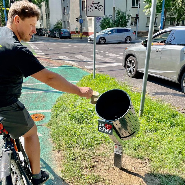 Pri cyklotrase na Trenčianskej ulici v bratislavskom Ružinove osadila mestská časť nový odpadkový kôš špeciálne upravený pre cyklistov. Umiestnený je na mieste, kde musia takmer vždy zastaviť pred križovatkou.
