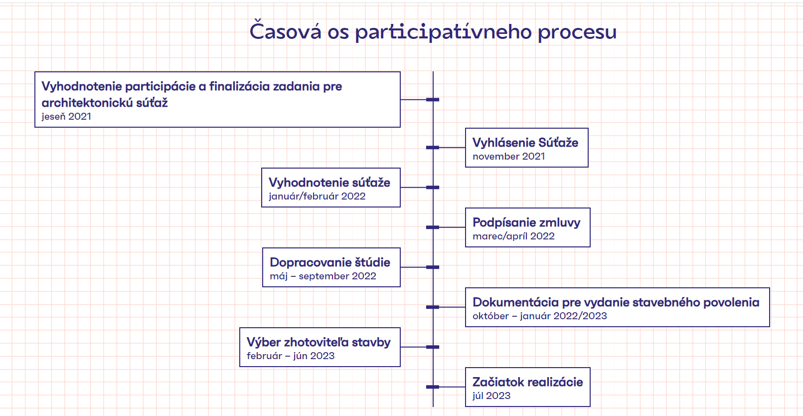 Momentálne prebieha príprava zadania pre architektonickú súťaž, ktorej súčasťou je participatívny proces. Zadanie môžu obyvatelia ovplyvniť, ak do 7. novembra 2021 vyplnia online dotazníkový prieskum . Výstupy z neho budú podľa Ondrejkovej dôležitým podkladom pre samotné zadanie architektonickej súťaže.