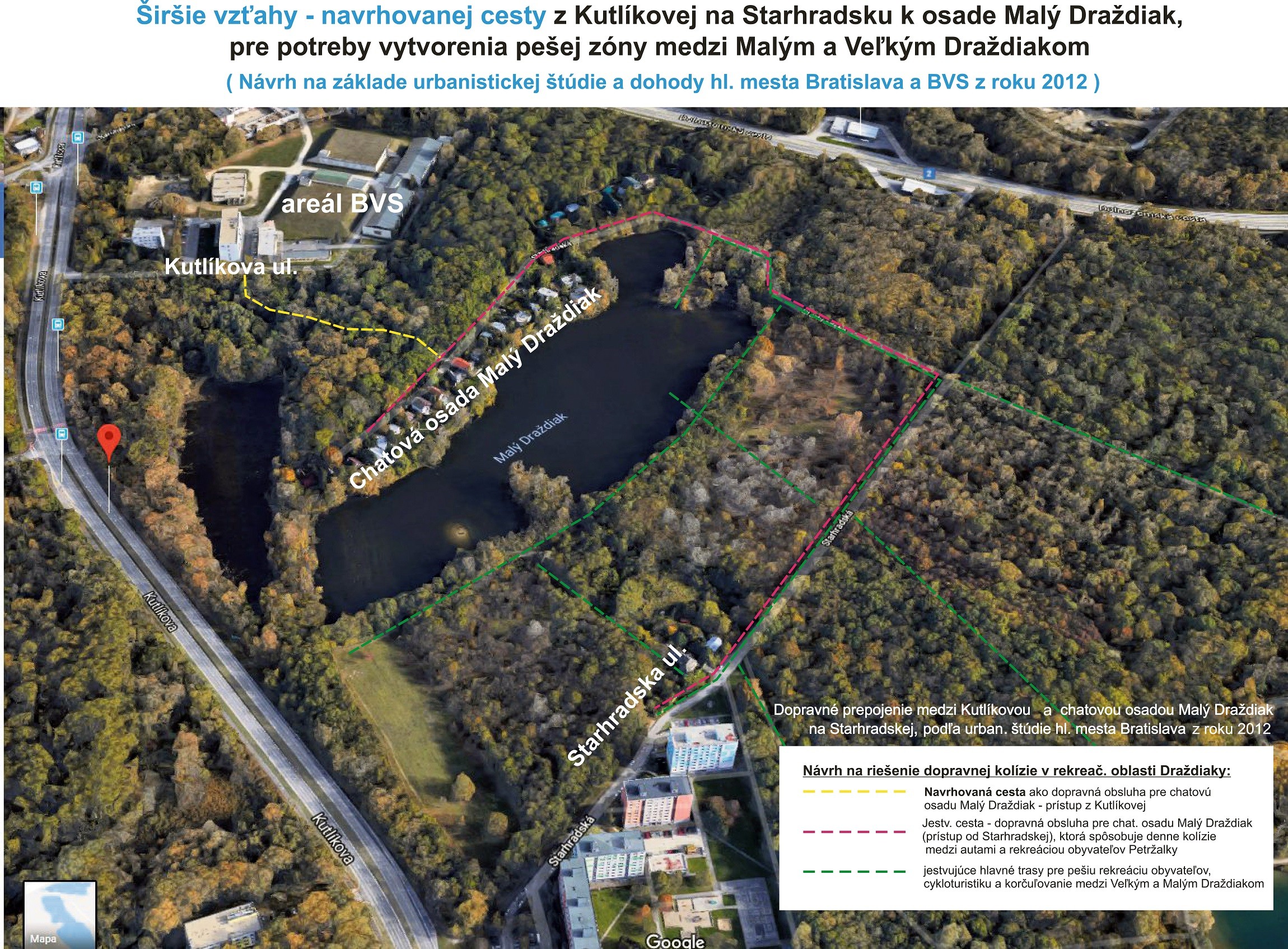 Následne je možné v budúcnosti zrealizovať popri ceste aj kanalizáciu, ktorá v chatovej oblasti chýba. Aktuálne chatová osada Malý Draždiak používa len žumpy a poslankyňa upozorňuje na riziko presakovania fekálií do vody jazera. „Kanalizácia je však časovo náročnejšia z hľadiska realizácie Bratislavskou vodárenskou spoločnosťou,“ vysvetľuje Elena Pätoprstá, prečo nechce aby sa kvôli prípojkám čakalo s výstavbou cesty z Kutlíkovej. Vytvorenie pešej zóny na časti cesty Starhradská v lesoparku považuje za prioritu z hľadiska bezpečnosti ľudí.