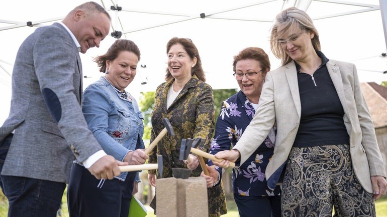 (Na úvodnej foto župan Juraj Droba, riaditeľka Odboru stratégií, rozvoja a riadenia projektov Barbora Lukáčová, rakúska veľvyslankyňa Margit Bruck-Friedrich, starostka Čunova Gabriela Ferenčáková, vicežupanka pre životné prostredie Elena Pätoprstá pri slávnostnom spustení rekonštrukcie kaštieľa.)