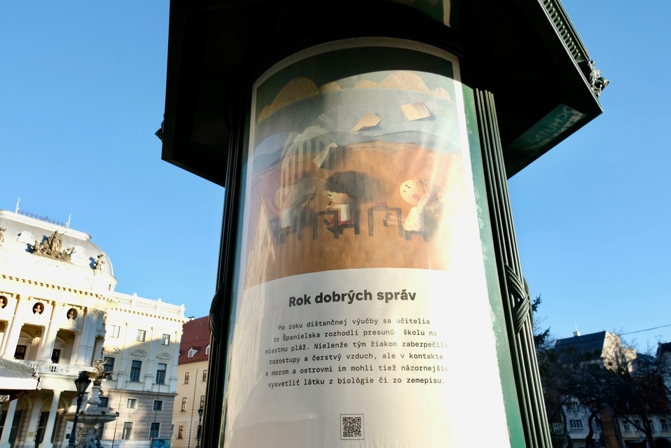 „Počas minulého roka si totiž Martin Smatana každý týždeň zapísal aspoň jednu dobrú správu, ktorú zaregistroval. A tieto dobré správy spolu s milými ilustráciami teraz spríjemňujú Bratislavčanom a návštevníkom hlavného mesta prechádzky centrom a zároveň nesú aj dôležitý odkaz - všímajme si dobro okolo seba aj v roku 2022," uvádza hlavné mesto Bratislava na svojom oficiálnom facebookovom profile, kde bolo včera publikovaných aj niekoľko fotografií dokumentujúcich aktuálnu kampaň plnú pozitívnych posolstiev.