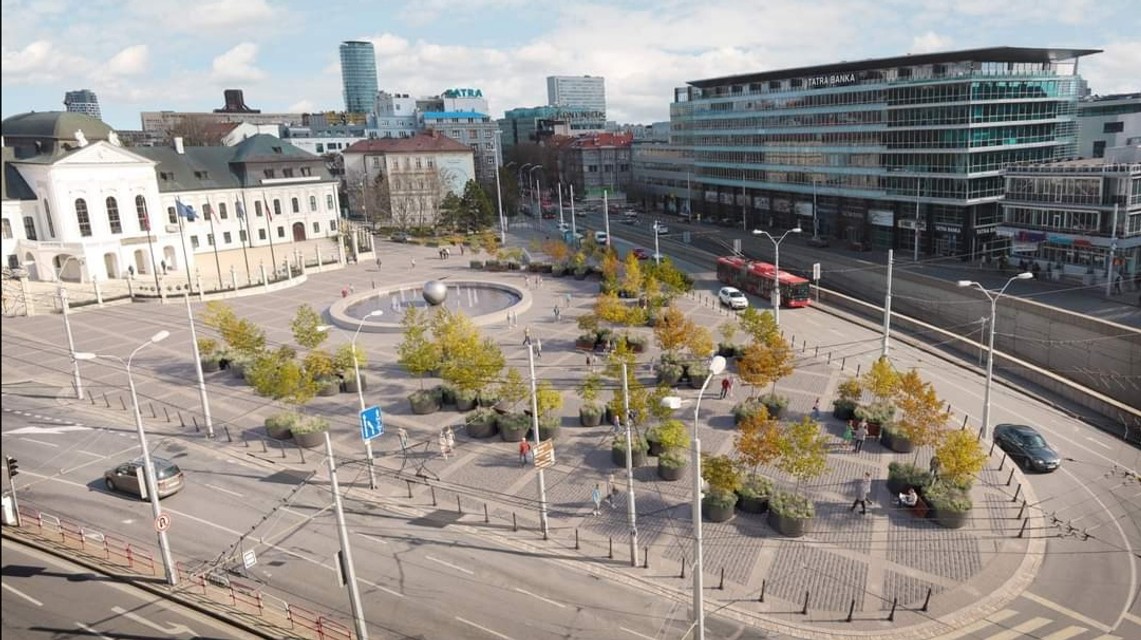 "Návrh reinterpretuje pôvodnú zeleň, zachováva hlavnú kompozičnú os a priehľady na významné okolité body a aj na Prezidentský palác tak bude krajší pohľad. Návrh podporuje priechodnosť územia a tiež ponúka lepší prístup zo spodnej časti námestia. Vytvorenie zelených ostrovov podporí intimitu prostredia, pričom zachováva bezpečnosť a prehľadnosť v území," vysvetľuje magistrát.