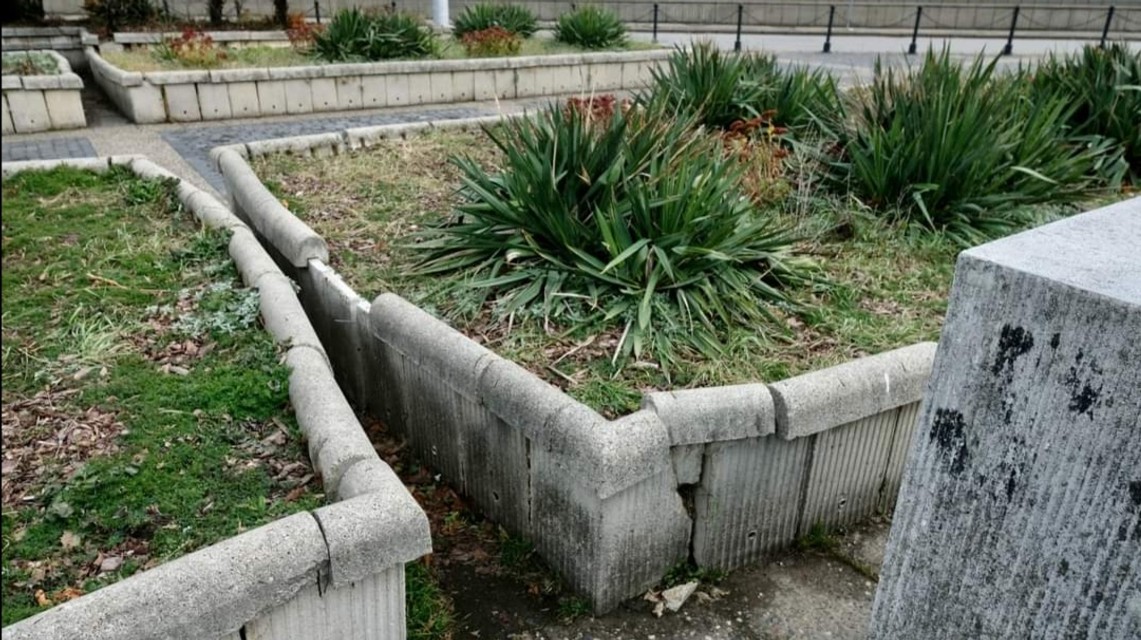 - betónové obruby nahradia novými kvetináčmi