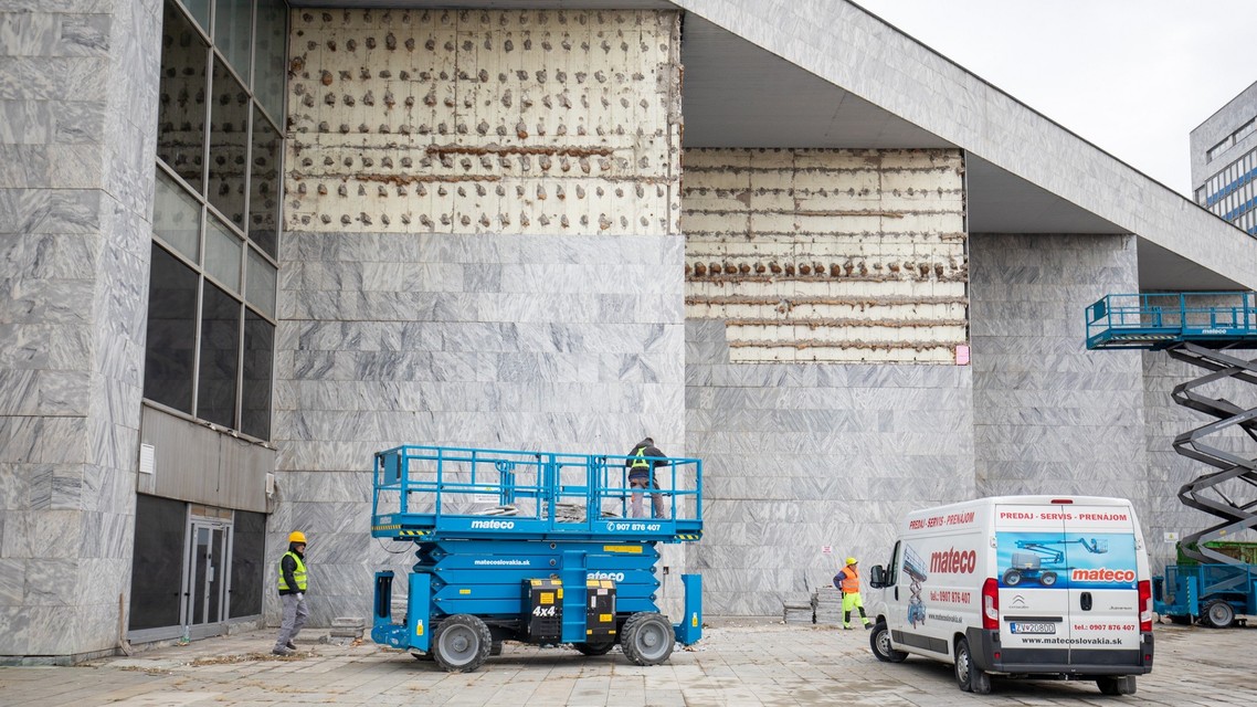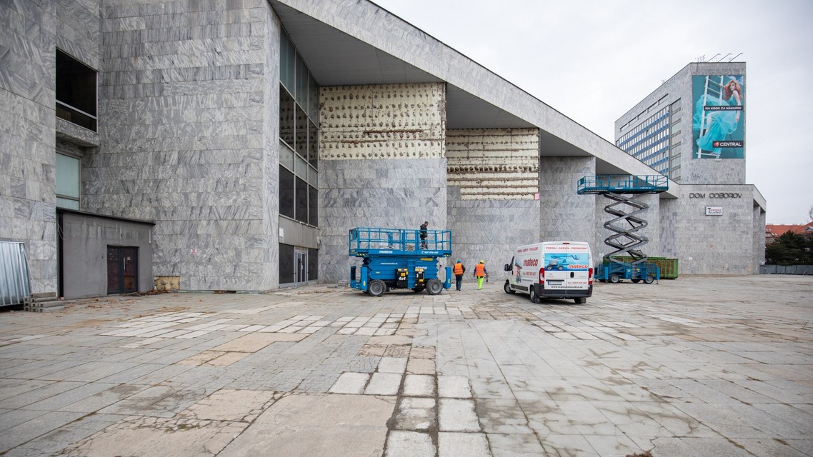 Pri Dome odborov (Istropolis) na Trnavskom mýte v Bratislave, ktorý budú búrať, pribudlo oplotenie. Zároveň sa tam začali prvé práce, konkrétne demontovanie mramorového obkladu.