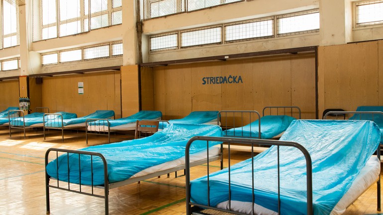 V športovej hale na Prokofievovej ulici v bratislavskej Petržalke vytvorila mestská časť spolu s dobrovoľníkmi dočasnú ubytovňu pre vojnových utečencov z Ukrajiny.