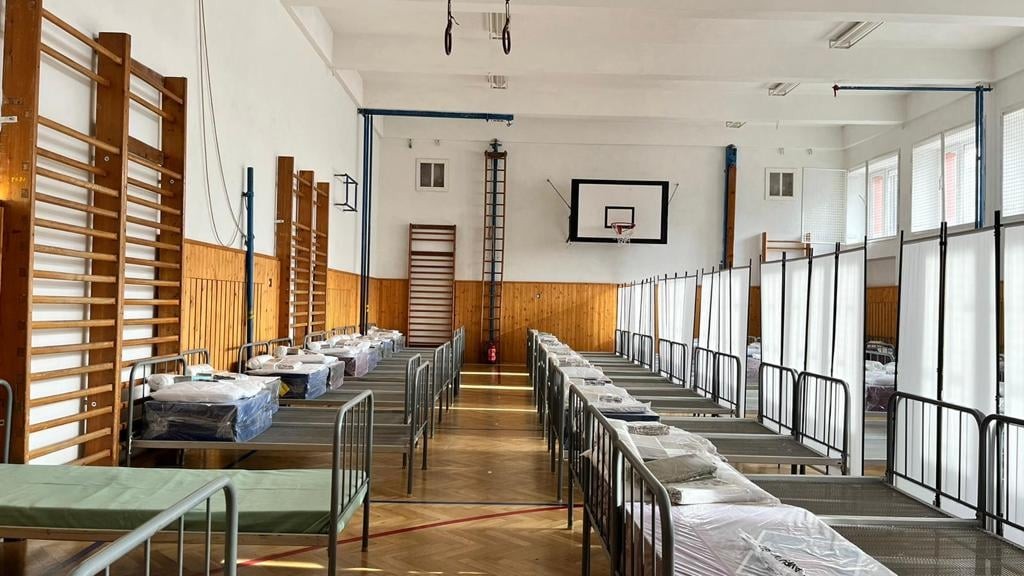 Dočasným útočiskom, kde môžu vojnoví odídenci prenocovať, dostanú teplé jedlo či oblečenie, je aj športová hala na Prokofievovej v bratislavskej Petržalke. Včera sme toto ubytovacie zariadenie navštívili aj my. Ako to tam vyzeralo?