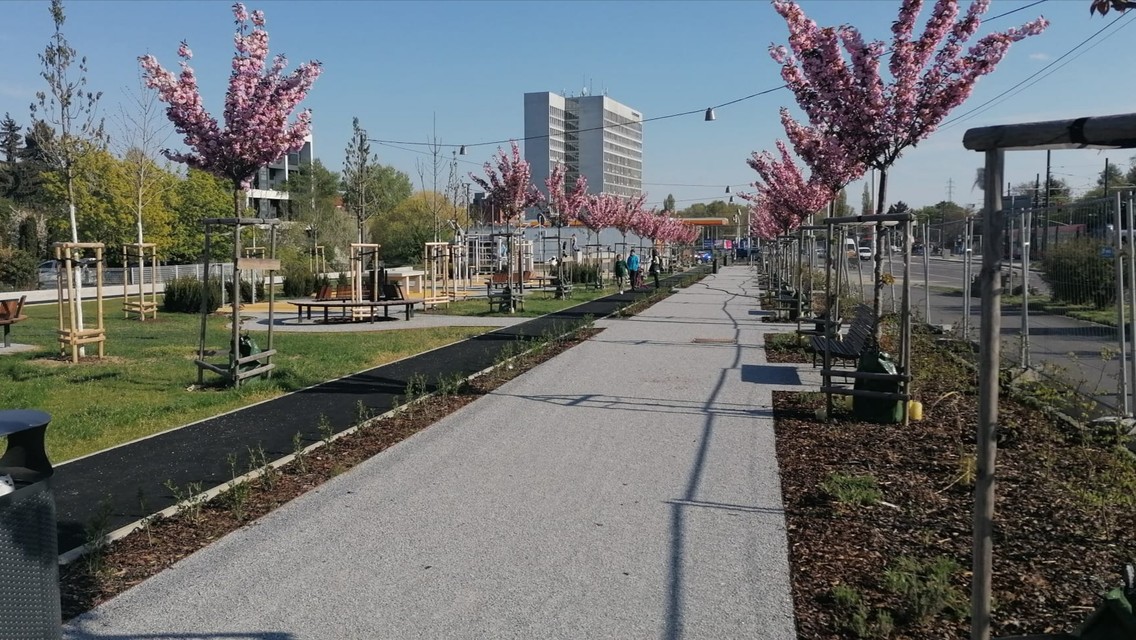 Nový park dokončujú na pozemku medzi benzínovou pumpou Shell a úradom práce. Ide o predtým nevyužívané miesto, ktoré však už skrášľovala sakurová alej, ktorá sa zachovala (stromčeky darovalo Bratislave japonské veľvyslanectvo). Japonské čerešne v týchto dňoch práve kvitnú a vyzerajú naozaj prekrásne.