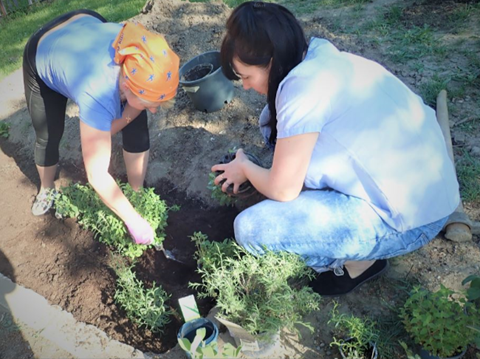 S výsadbou a úpravou bylinkového záhonu a tiež s maľovaním betónového objektu pomohli dobrovoľníčky z Ukrajiny, ktoré našli dočasný domov v Študentskom domove Družba. Zmeny sa udiali vďaka projektu "Pitná fontánka v zelenej oáze" s podporou zamestnaneckého grantu Soitron.