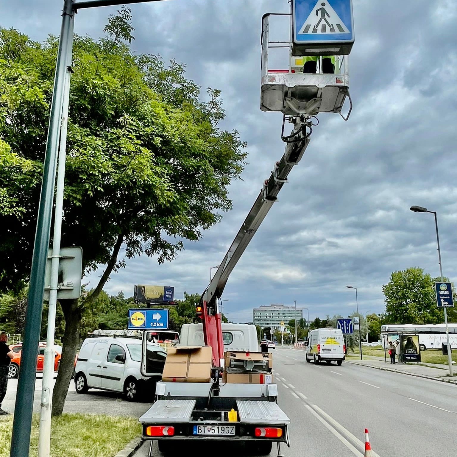 Nad priechodom osádzajú nove osvetlenie, ktoré má pomôcť zlepšiť bezpečnosť tohto úseku.