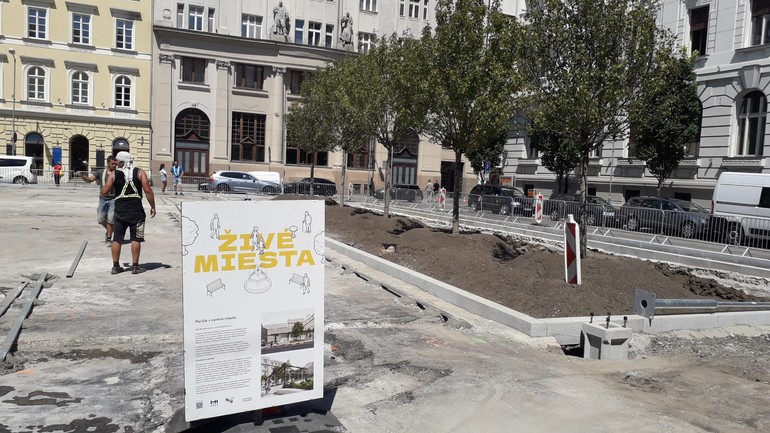 "Mesto na námestí realizuje rekonštrukciu verejného priestoru, vrátane výsadby novej zelene, osadenia kamennej dlažby a mobiliáru. Práce majú prebiehať do konca leta. Po ukončení týchto prác bude priestor oživeným, plnohodnotným verejným priestorom," informovala nás hovorkyňa magistrátu Dagmar Schmucková.