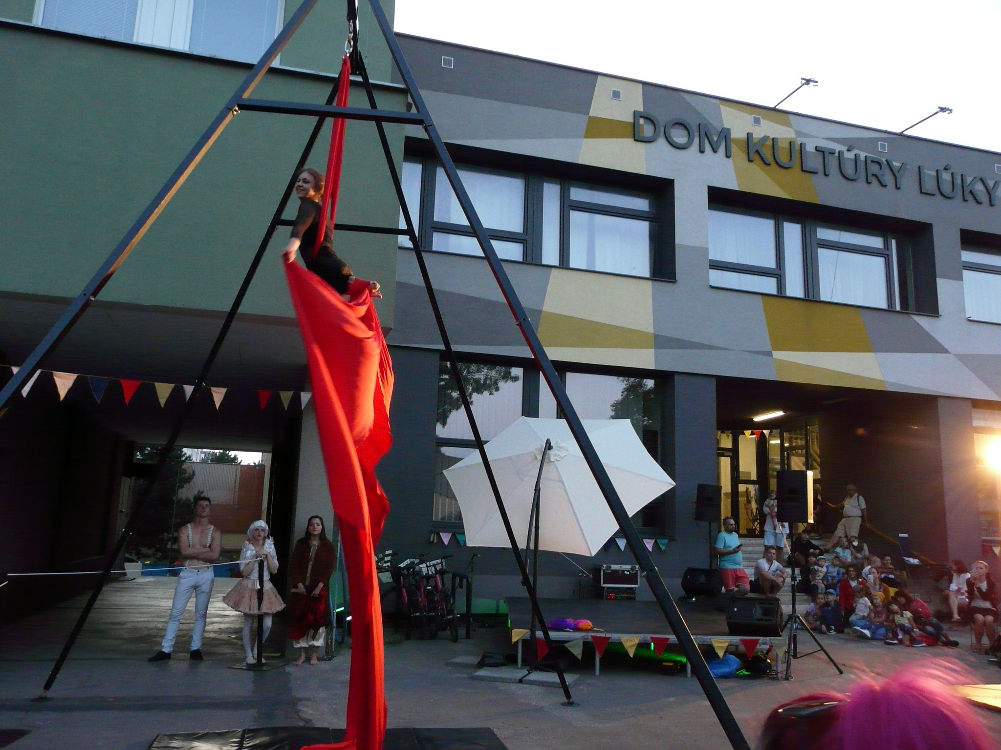 Je tu nadštandardne vybavená telocvičňa, ktorá môže slúžiť pre cirkusovú školu, aktuálne tam funguje ateliér vzdušnej akrobacie – pre deti aj dospelých. Veríme, že sa to rozbehne.