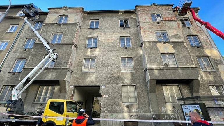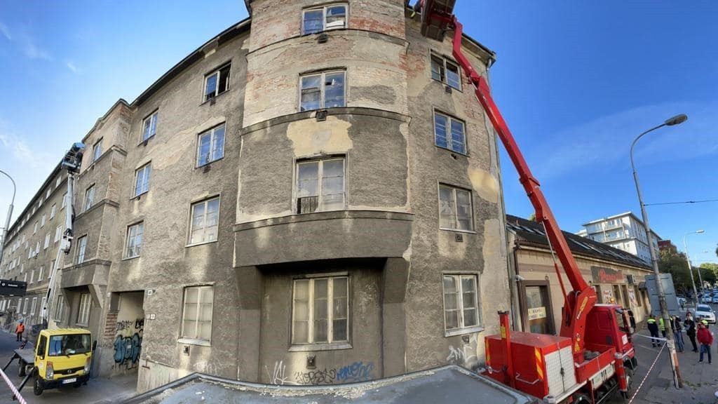 "Dom ohrozuje už veľmi dlho obyvateľov, ktorí chodia okolo. Priamo na zastávku, veľmi frekventovanú pri trhovisku Miletičova, tam padajú veľké kusy omietky," skonštatoval Chren.