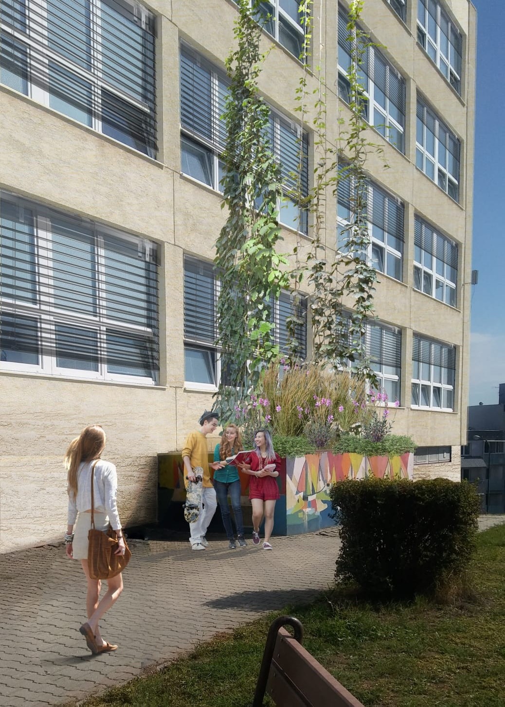 Vďaka rekuperácii budú mať žiaci v triedach čistejší vzduch. Popínavé rastliny vysadia aj na dve vonkajšie fasády. Pred budovou školy sú umiestnené dve betónové nádoby. Vysadia do nich novú trvalkovú vegetáciu spolu s lankovým systémom pre popínavé rastliny.