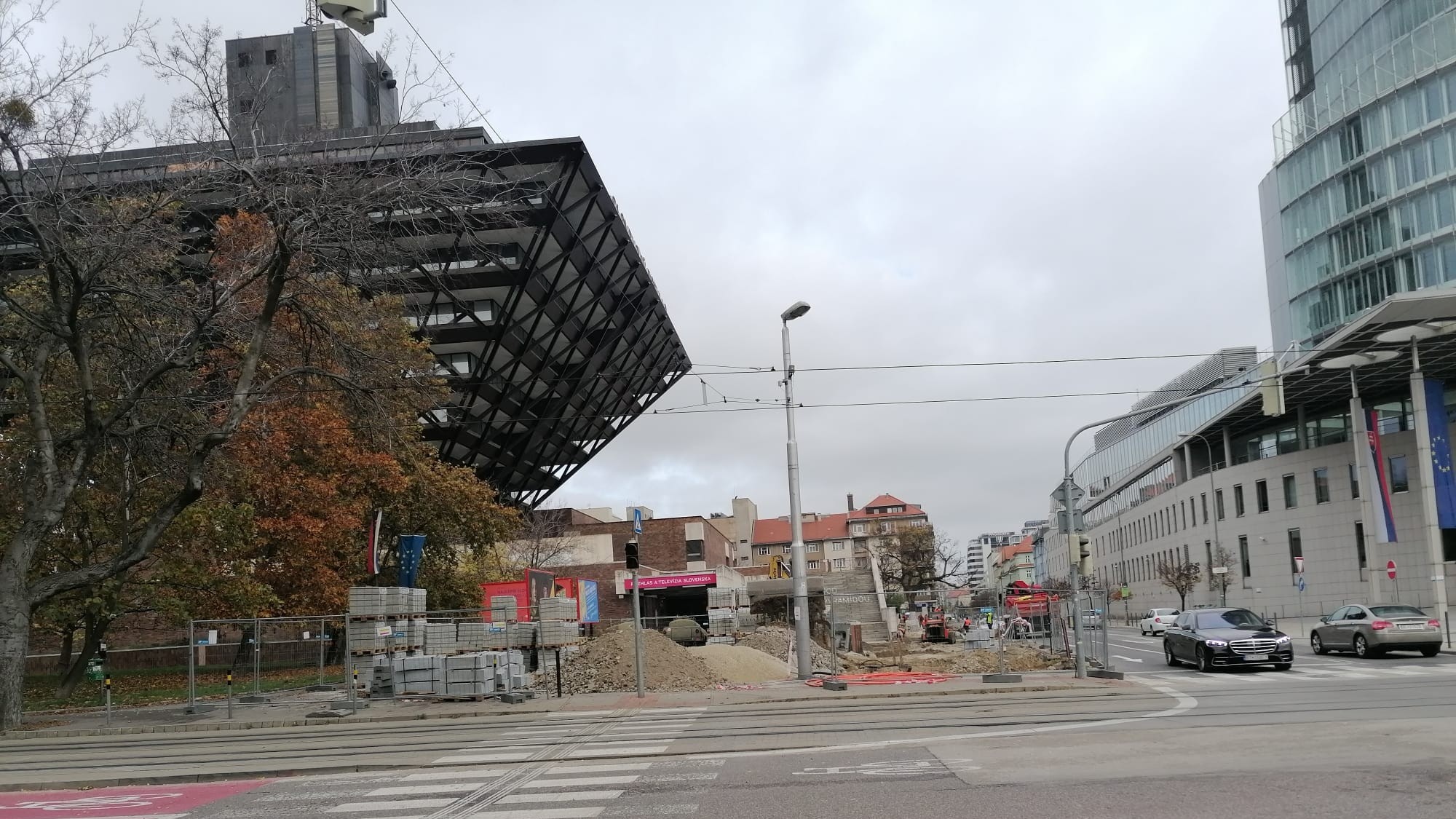 Bratislavská mestská dlažba nahrádza asfalt aj pred obrátenou pyramídou