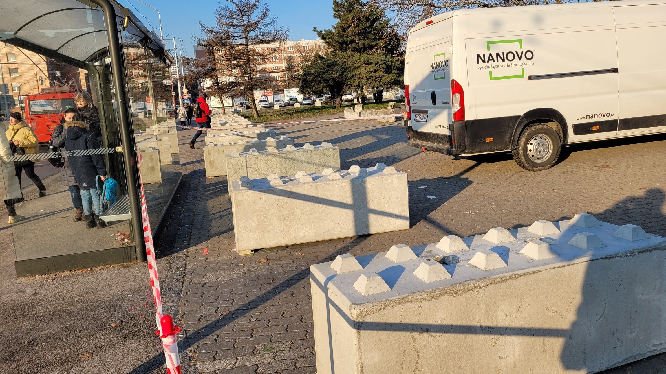 Ako naznačujú opáskovanie i betónové kvádre, oplotenie pôjde až k zastávke MHD.