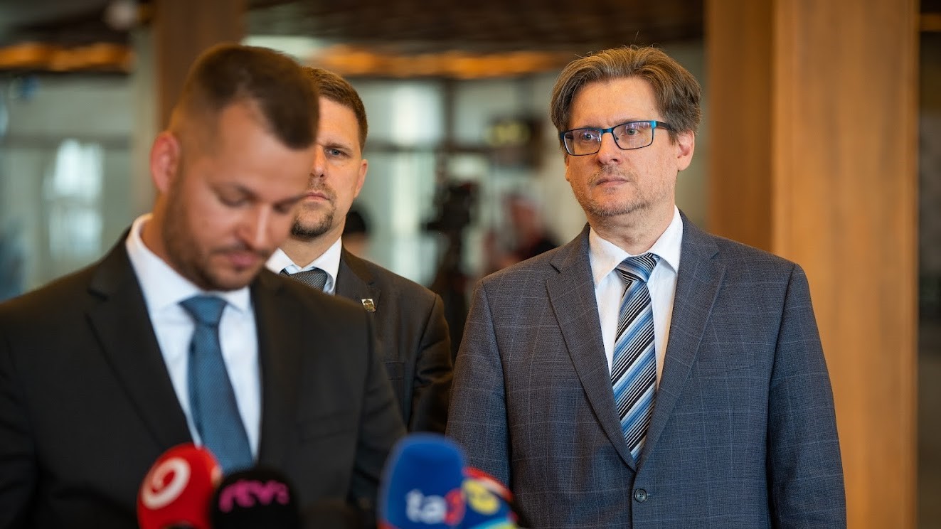 Poslanec Ľuboš Krajčír, za ním starosta Petržalky Hrčka a vpravo Milan Vetrák.