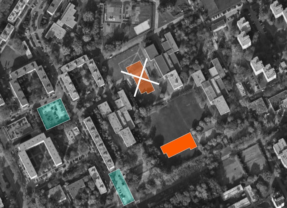 Jej pôvodne plánované umiestnenie (Variant A) na zanedbanej spevnenej ploche medzi budovami troch škôl sa totiž nepáčilo miestnym obyvateľom, ktorí voči nemu spísali aj petíciu. Petržalský starosta Ján Hrčka s kolegami z miestneho úradu preto –aj na základe verejnej diskusie – pripravil alternatívne situovanie haly (Variant B) a v kontexte poverenia miestneho zastupiteľstva sa názor väčšiny pokúsil reflektovať takzvanou zmenou stavby pred dokončením.