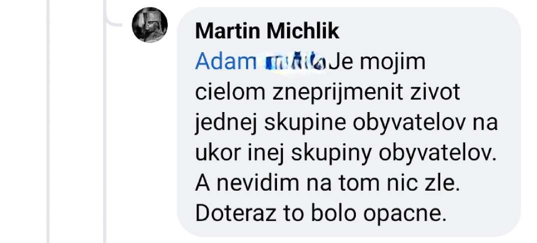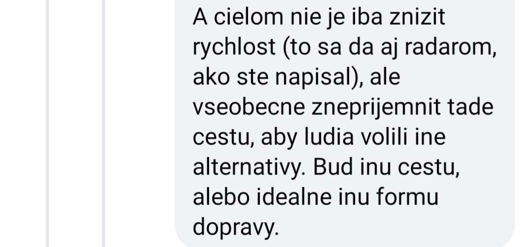 Ako sme si všimli, pod naším článkom sa na sociálnej sieti rozprúdila búrlivá diskusia. Mnohí vodiči vedeniu mesta vyčítali, že priechod vlastne nič nerieši, no mnohým ľuďom skomplikuje život. Do diskusie sa zapojil so svojím názorom aj poslanec z Vallovho Teamu Bratislava za Karlovu Ves Martin Michlík, ktorý vybudovanie priechodu obhajoval i takto: "Cieľom nie je iba znížiť rýchlosť (to sa dá aj radarom), ale všeobecne znepríjemniť ľuďom cestu, aby volili iné alternatívy..." Na výčitku, že chce ako poslanec časti obyvateľstva znepríjemňovať život, reagoval, že to tak je a vôbec sa za to nehanbí. "Je mojím cieľom znepríjemniť život jednej skupine obyvateľov na úkor inej skupiny obyvateľov. A nevidím na tom nič zlé. Doteraz to bolo opačne," uviedol ešte poslanec.