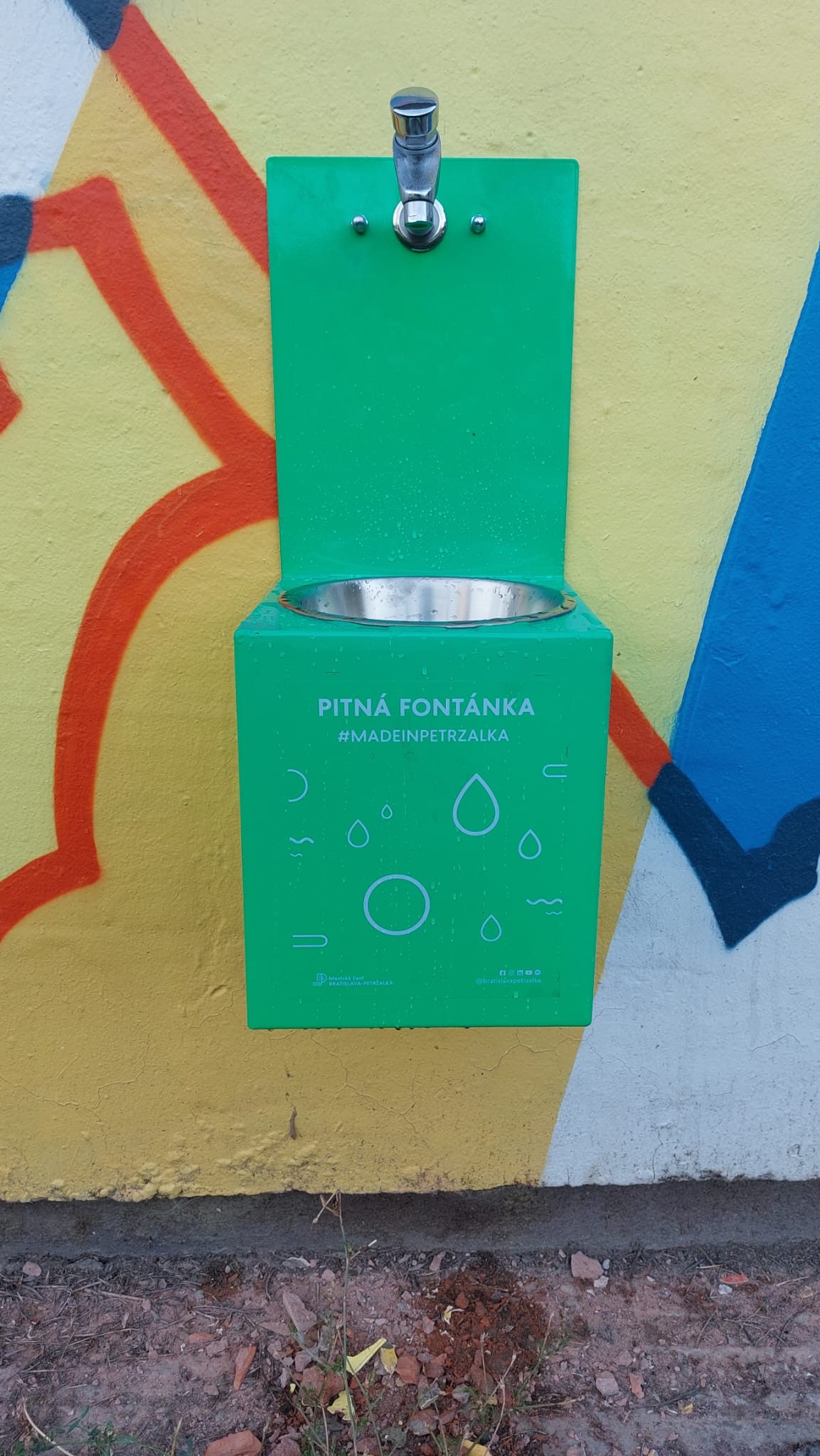 Na jeseň minulého roka odštartovala Petržalka pilotný projekt špeciálnych pitných fontán, ktoré umiestnila prioritne v susedstve ihrísk – na stenách odovzdávacích staníc tepla spoločnosti Veolia, hovorovo známych ako kotolne.