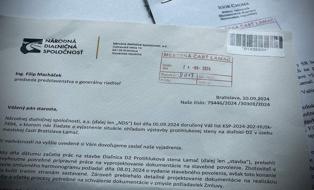 Uvádza, že rezort ju informoval o zdržaní pri vydaní stavebného povolenia, keďže konanie o žiadosti z januára tohto roka bolo v dôsledku podnetov tretích strán zastavené. Ministerstvo dopravy ako špeciálny stavebný úrad pre diaľnice napokon stavebné povolenie vydalo dňa 28. augusta 2024.