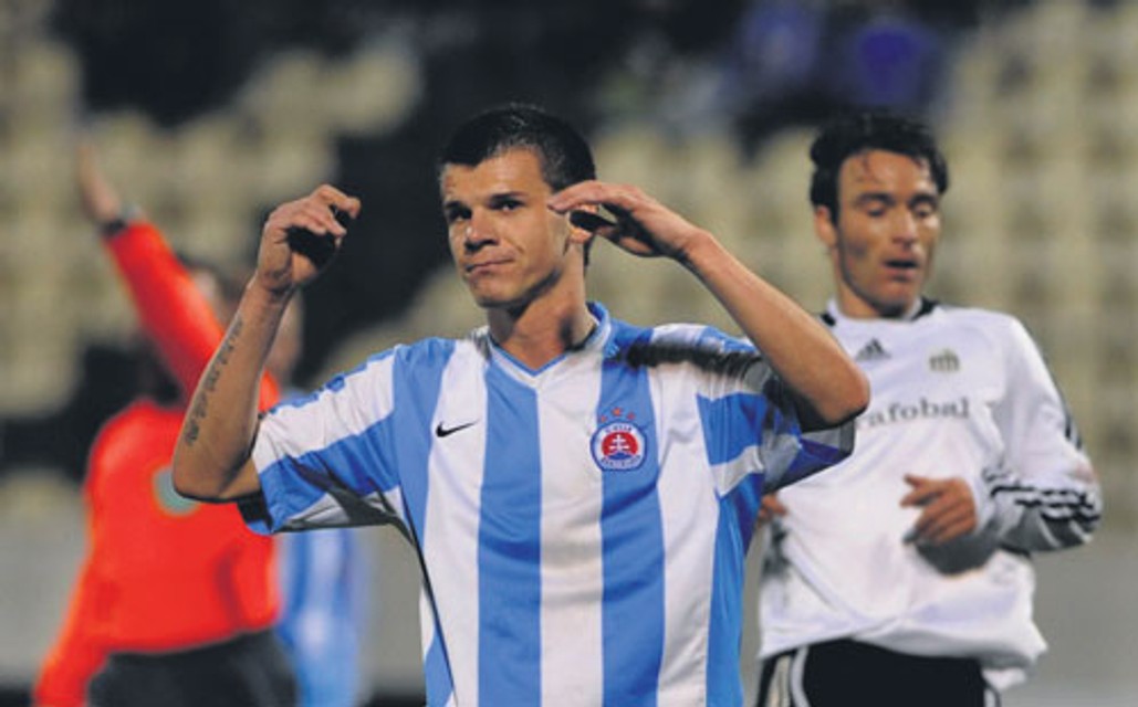 Hosťujúci Juraj Halenár neskrýval po derby s Petržalkou sklamanie, domáci Juraj Czinege (vzadu) mohol byť naopak spokojný. Slovan remizoval s Artmediou 1:1 a chystá sa na šláger so Žilinou.