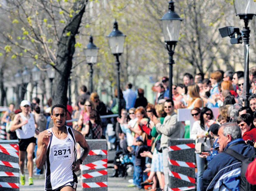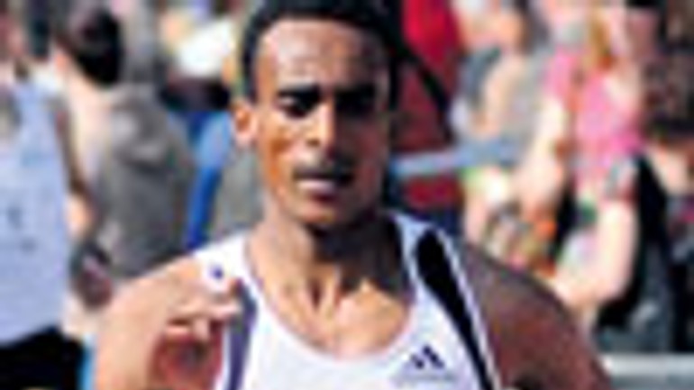 Historický okamih, do cieľa pribieha prvý africký víťaz, Etiópčan Mossissa.