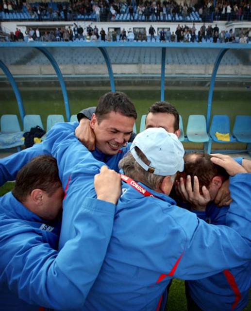 Na ceste za titulom mu v trénerskej práci ako asistenti pomáhali ďalší dvaja bývalí hráči belasých Marián Zeman a Vladimír Kinder.
