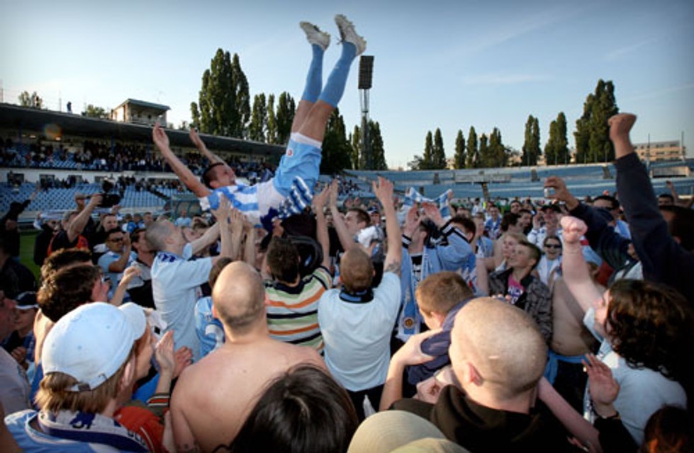 Futbalisti ŠK Slovan Bratislava sa po desaťročnej pauze stali opäť víťazmi najvyššej slovenskej súťaže. V stredu v 29. kole Corgoň ligy belasí zdolali doma Nitru 3:1, a keďže obaja ich konkurenti Žilina a Trnava prehrali, štyri tisícky divákov mohli na Tehelnom poli v predstihu oslavovať titul.