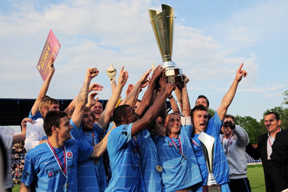 Futbalisti ŠK Slovan Bratislava sa stali víťazmi 41. ročníka Slovenského pohára, keď v utorňajšom finálovom stretnutí v Michalovciach zdolali hráčov Spartaka Trnava rozdielom dvoch tried 6:0. Vyrovnali tým rekordný triumf v pohárovom finále spred dvadsiatich rokov, keď Inter Bratislava zdolal ZVL Žilina 6:0.