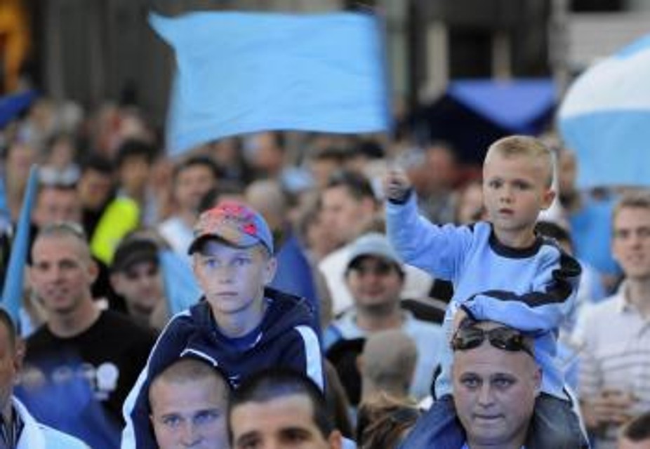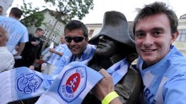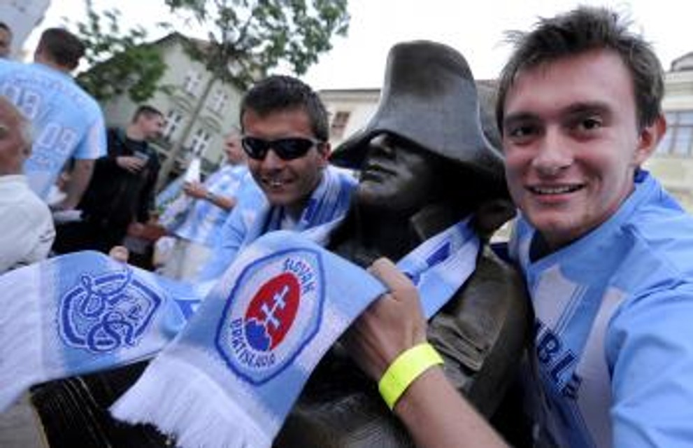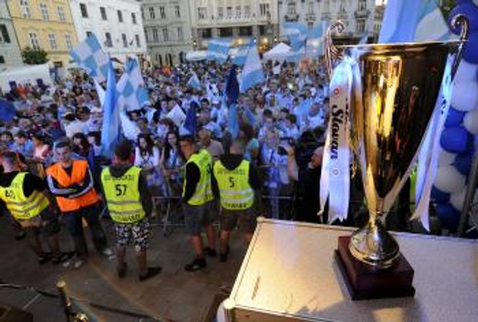 Tam ich čakalo niekoľko tisíc nadšených a rozvášnených fanúšikov v belasých a modro-bielych farbách, ktorým sa zrejme na prelome kalendárnych rokov o majstrovských oslavách ani nesnívalo. Slovan totiž strácal po jeseni na vedúcu Žilinu až tucet bodov, ale na jar potom čaroval. Davy belasých priaznivcov na Hlavnom námestí zabávala skupina Lojzo, ktorá je známa svojim dlhoročne pozitívnym vzťahom k Slovanu, a Belasá Šľachta.