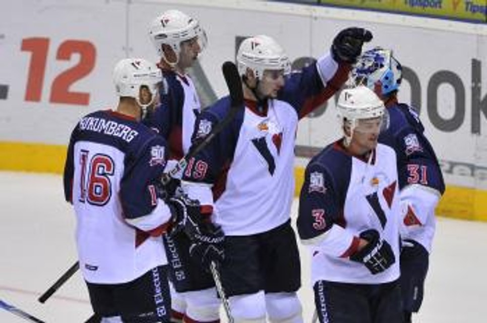Domáci začali v skvelej atmosfére vypredaného štadióna bez rešpektu a už v 4. minúte mohol otvoriť skóre Kukumberg, ktorý sa rútil sám na bránu, no puk z jeho hokejky skončil tesne vedľa. Na opačnej strane sa ocitol medzi kruhmi osamotený Richards, Konrád však prudkú strelu do stredu brány zneškodnil. V 8. minúte si Slovan po závare pred Lundqvistom vynútil presilovú hru, ktorú o minútu neskôr využil obranca Švarný, keď strelou od modrej čiary využil zakrytý výhľad brankára - 1:0. V 12. minúte mohol odpovedať Anisimov, ale ani na dvakrát sa mu nepodarilo prekonať domáceho gólmana. Slovan mal v závere úvodnej časti šancu zvýšiť svoj náskok počas 21-sekundovej presilovky piatich proti trom, tá však zostala nevyužitá.